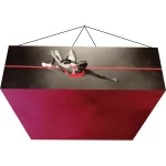 Zipper pillowcase stretch fabric graphics are coupled with lightweight aluminum tube structures to deliver impactful messaging from above. Graphics are durable and dry-cleanable.