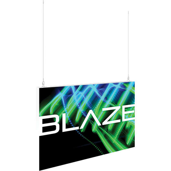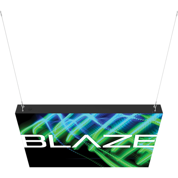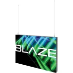 Blaze Hanging Light Box 0604 is a double-sided, backlit display that is UL certified for indoor applications such as retail stores, workplace interiors, events, and tradeshows. The ceiling mounted frame is able to minimize shadowing by having a 6″ deep frame and pre-attached LED light bars. The graphics push-fit into the frame to create a seamless aesthetic.