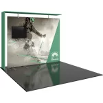 Formulate® Designer Series 10ft Fabric backwall Kit 08 is sophisticated fabric exhibit that features two aluminum tube frames for the backwall featuring snap/button spigot connections, a kiosk supporting a medium monitor mount for multimedia display, a tubular/fabric canopy and simple pullover zipper pillowcase fabric graphics. Designer Series Kit 08 comes in three portable, expandable wheeled transit cases for easy storage and transport. Assembly and graphic attachment is easy – simply pull the pillowcase fabric graphics over the frame and zip.