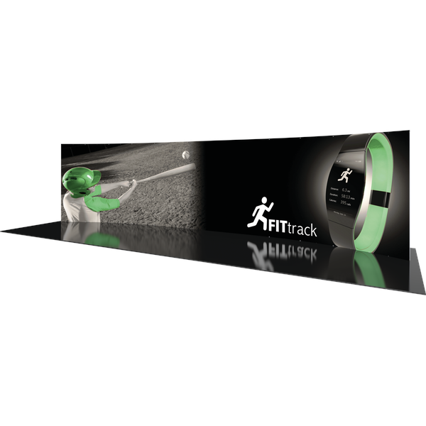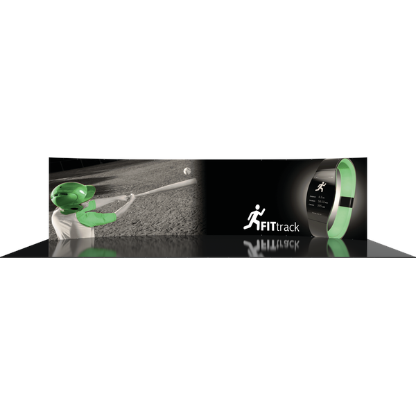 Formulate® Designer Series 30ft Backwall Kit 03 featues a horizontal curve shape and commands a dominating presence with ample real estate for graphic messaging. The kit includes one aluminum tube frame with snap-buttons/spigot connections and one zipper pillowcase fabric graphic that simply stretches over the frame. Assembly is simple – connect the tubes, pull the graphics over the frame and zip.