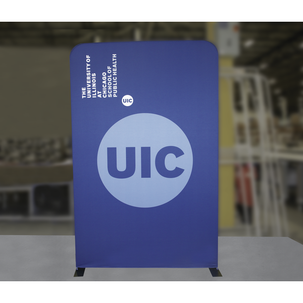 The Formulate® Essential Banner 1500 – Straight measures 59″W, 92″H and features a simple straight bungee-corded tube frame and a fabric graphic that simply slips over the frame. Perfect for any environment – from retail to trade show!
