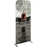 The Formulate® Essential Banner 850 – Straight measures 33.5″W, 92″H and features a simple straight bungee-corded tube frame and a fabric graphic that simply slips over the frame. Perfect for any environment – from retail to trade show!