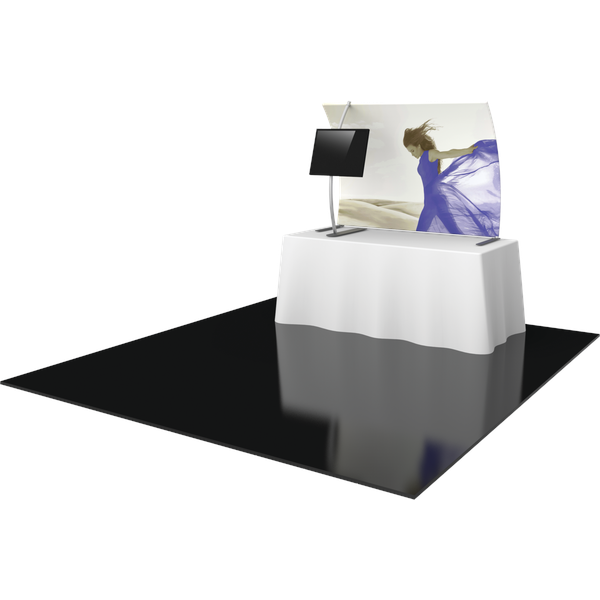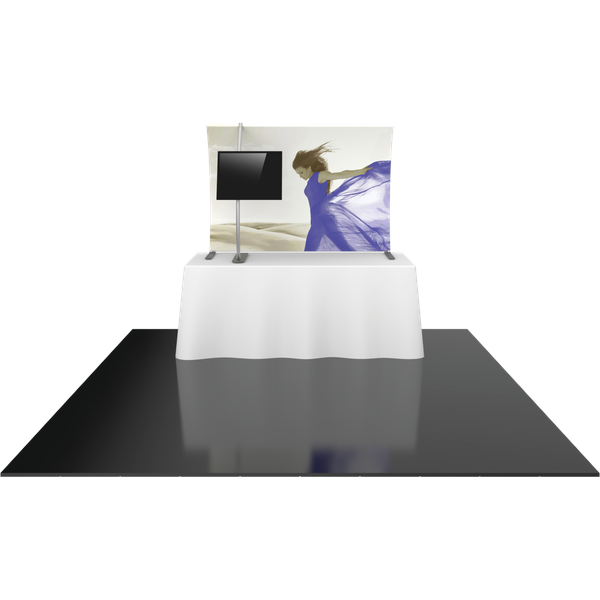 The Formulate® TT3 Tabletop Fabric Display is sleek portable display that features a monitor mount frame to support a small monitor for presentations. The aluminum tube frame easily assembles with the use of snap buttons, and pillowcase graphics pull over the frame and zip up quickly. Stretch fabric graphics are vibrant and durable.