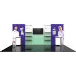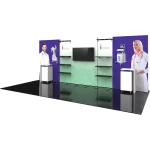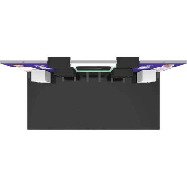 Hybrid Pro™ Modular Kit 31 is a functional, fashionable modular exhibit that will turn heads at your next tradeshow. Kit 31 features five push-fit fabric backwalls. The center wall includes a monitor mount that can hold a medium monitor. Two of the backwalls feature three black shelves to display small products; canopies above include puck lights designed to shine light on products below. The right and left walls are areas for bold graphics and messaging; accent counters offer areas for reception and engagement. This inline modular exhibit has a little bit of everything for the ultimate tradeshow experience!