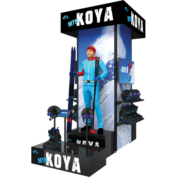 MODify 4-Sided Kit 02 is a cutting-edge retail merchandising display tower that uses silicone-edge graphics on all four sides and can be adorned with fixtures such as shelves or hang bars. The top header allows branding to be prominently displayed for maximum visibility.