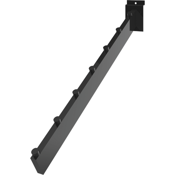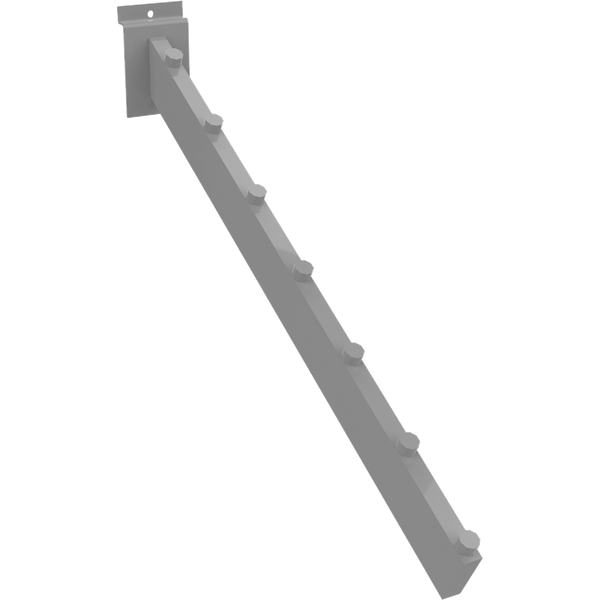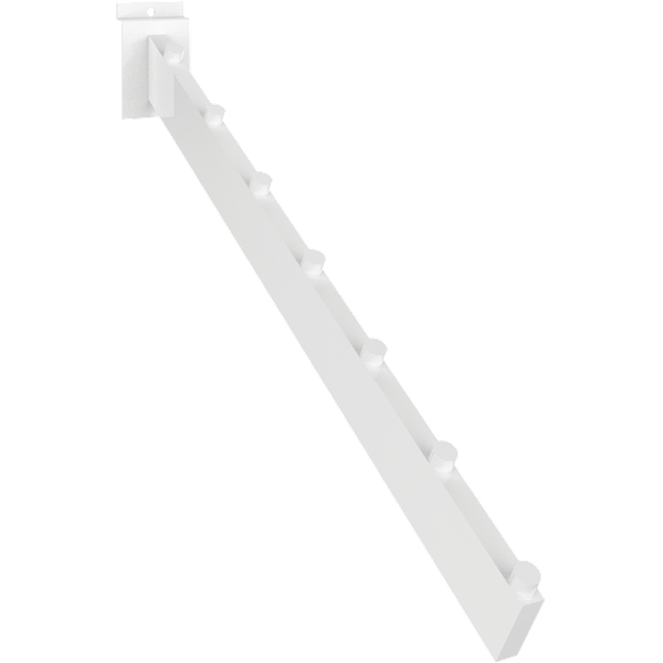 The MODify 7 Peg Slatwall Waterfall is ideal for hanging merchandise on a MODify Slatwall panel. The pegs offer a separation of products, and the angle allows merchandise to be easily viewed.