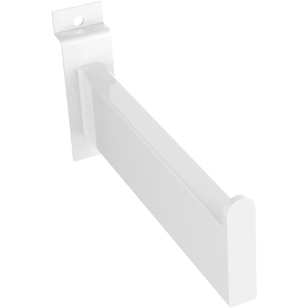 The MODify 6″ Slatwall Faceout Bar is a staple fixture for organizing and displaying merchandise on MODify slatwall panels. This faceout bar is perfect for displaying clothing, accessories, and other merchandise. Available in silver, white, and black finishes to match other fixtures.