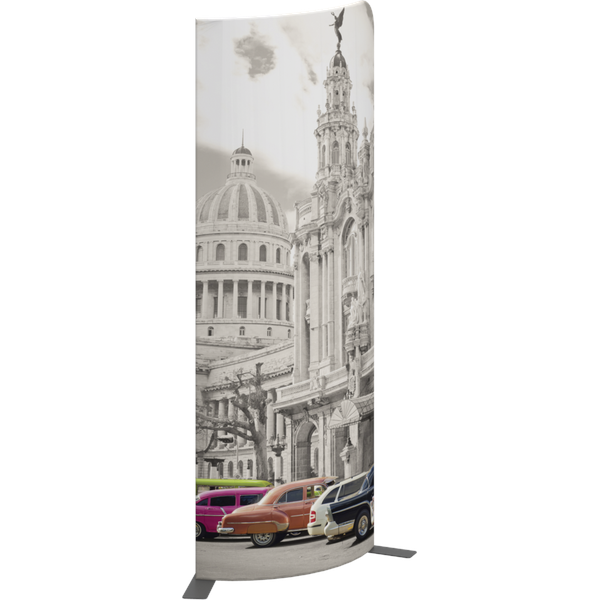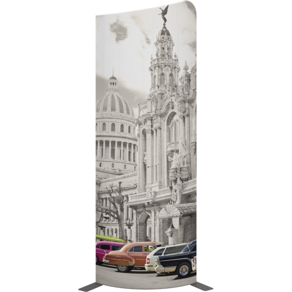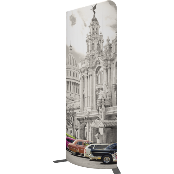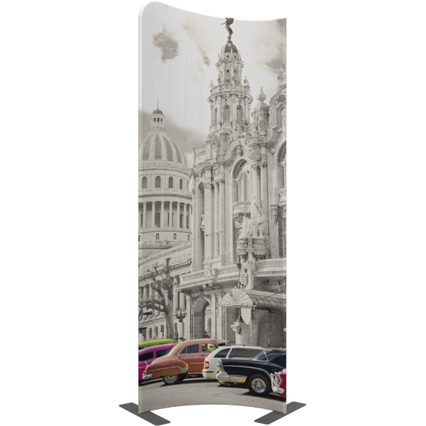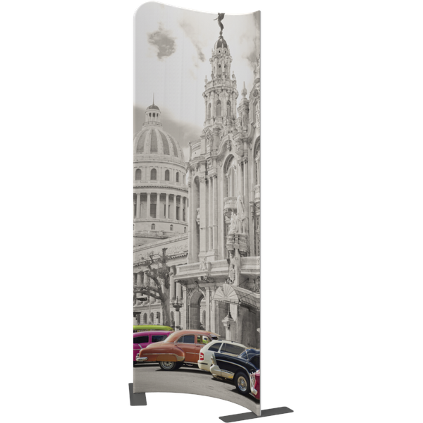 Modulate Fabric Banner 03 has two different corner shapes (right or left position is your choice) and can be displayed in a concave or convex format.