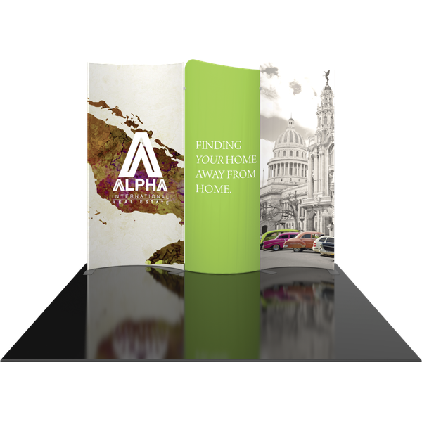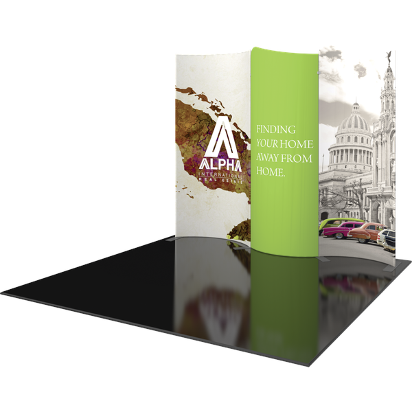Modulate 10ft Kit 02 consists of three curved, magnetic fabric banners. Create an impact with a stylish 10ft wide inline display and/or repurpose as individual banners and maximize your value! Modulate Reconfigurable Kits