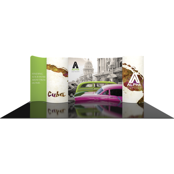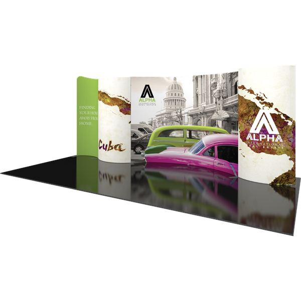 Modulate 20ft Kit 01 consists of four curved, magnetic fabric banners. Kit 01 can reconfigure into a 10ft display (MOD-FRM-05-M-TL) and can also be repurposed as individual banners. Versatile, simple and smart displays help exhibitors maximize their display value. Modulate Reconfigurable Kits