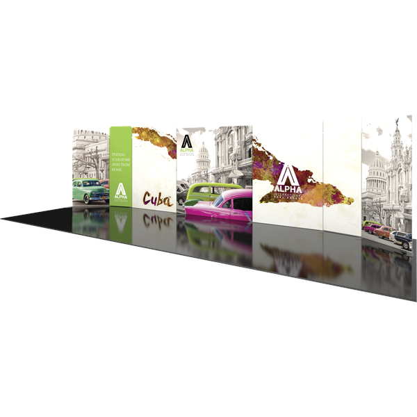 Modulate 30ft Kit 03 consists of seven straight, magnetic banners. Kit 03 reconfigures into a 20ft wide display, OR into two 10ft wide displays. Maximize your value in this versatile, reconfigurable system. Modulate Reconfigurable Kits