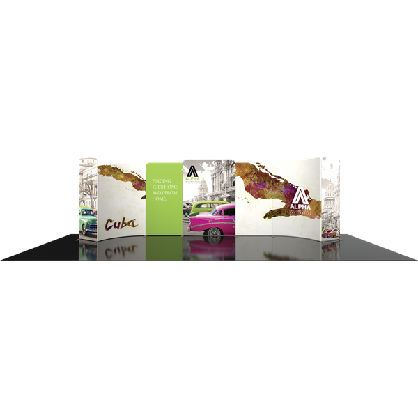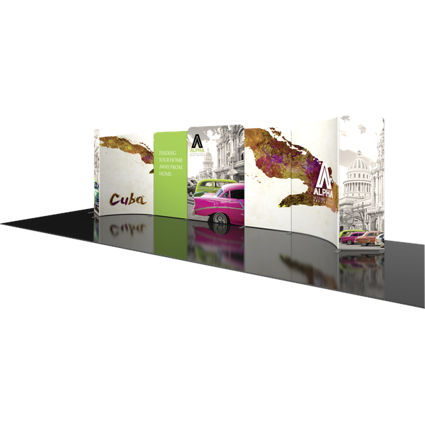 Modulate 30ft Kit 04 consists of five straight and two curved, magnetic banners. Kit 04 reconfigures into a 20ft wide display, OR into two 10ft wide displays. Maximize your value in this versatile, reconfigurable system. Modulate Reconfigurable Kits