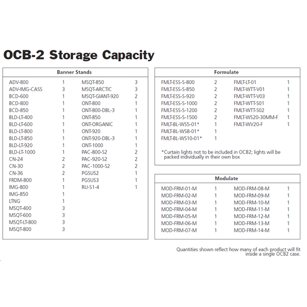 1 x OCB2 (19"L x 34" - 55"H x 8"D) |