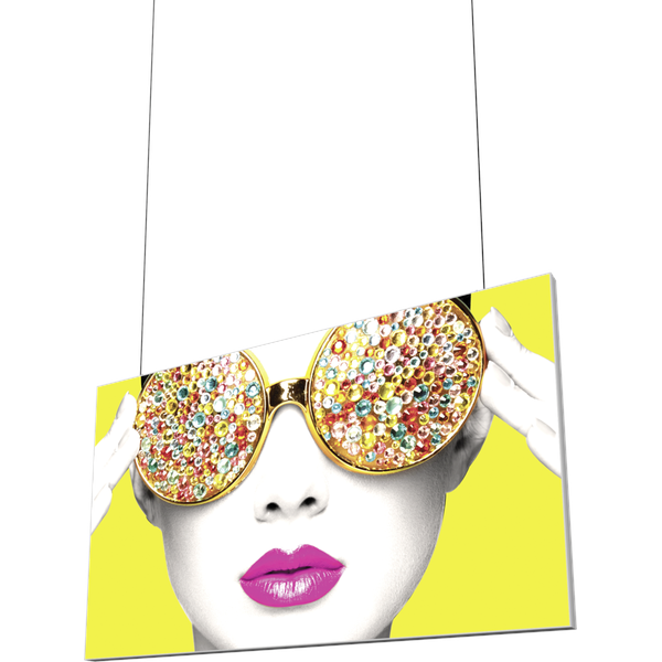 – 100mm silver extrusion frame hangs from the ceiling