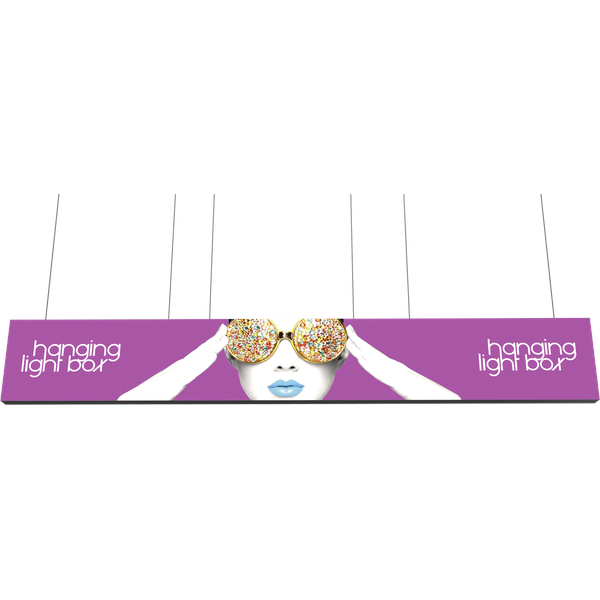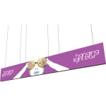 The Vector Frame™ Hanging Light Box 20′ x 3′ is an impressive, extrusion-based rectangular illuminated hanging structure that is sure to captivate on the show floor. This 20′ wide display features pre-attached LED lighting strips and single or double-sided push-fit fabric graphics. Rigging and electrical from the ceiling is required. Ideal for illuminated messaging in retail and tradeshow environments.