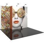Make an impact at your next event with the 10ft x 10ft inline Vector Frame™ Master exhibit Kit 03. Vector Frame Kit 03 features two staggered, square-corner 50mm extrusion frame panels and seamless push-fit SEG fabric graphics. LED display lighting showcases your messaging so you cannot be missed. Kit 03 provides a portable display that makes your presence known.