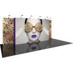 The 10ft x 20ft inline Vector Frame™ Master exhibit Kit 07 is a sleek modular display kit that creates the appearance of a fully customized exhibit. Vibrant push-fit SEG graphics easily attach to durable aluminum extrusion frames. A large central panel is accented by two graphic wings for clear messaging. LED display lighting illuminates your messaging so your brand stands out at events. Vector Frame Master Kit 07 is easy to assemble and disassemble, and is an ideal solution for a quick, impactful display.