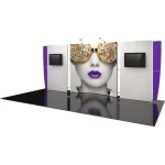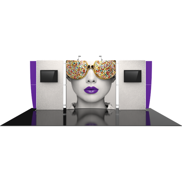 Vector Frame™ Master 10ft x 20ft inline Kit 22 is a modular display kit with a modern and innovative design that’s sure to stand apart from the competition. Kit 22 features push-fit fabric graphics, three easy-to-assemble extrusion frames and rigid graphic wing accents. Three free-standing panels comprise the backwall for an eye-catching appearance. Two monitor mounts provide additional space for messaging. LED display lighting illuminates messaging and graphic design, capturing the attention of your audience! Make an impression on any audience with Vector Frame 10ft x 20ft Kit 22.