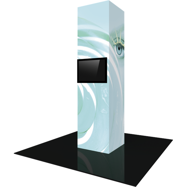 The Vector Frame™ Backlit Monitor Tower 05 is an illuminated rectangular architectural structure that measures 12’h and 3′ square at the top and bottom. The Backlit Monitor Tower 05 couples extrusion frames and vibrant, push-fit fabric graphics with an internal lighting kit and dual monitor mounts to create a dramatic and impressive display with maximum branding opportunities. The monitor mount kit includes two medium monitor mounts, placed on opposite sides of the display, which can each hold a maximum 20lb monitor measuring 32″-44″. A molded, wheeled case for easy storage and transportation is included.
