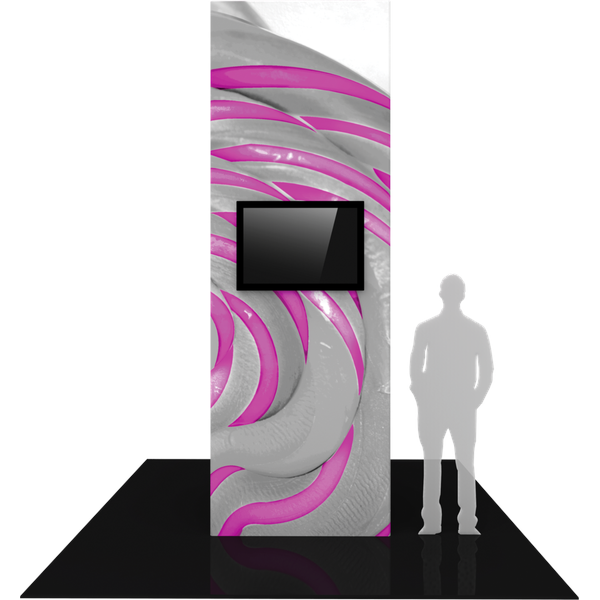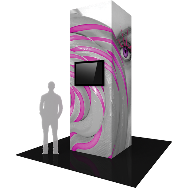 The Vector Frame™ Modular Monitor Tower 06 is an impressive architectural structure coupling extrusion frames with push-fit fabric graphics and a dual monitor mount kit to create a commanding display for any interior environment. Measuring 12’h and 4′ square at the top and bottom, this rectangular display is the perfect statement piece. The Vector Frame Tower 06 can accommodate an internal lighting kit (sold separately) for added drama. Each kit comes with a molded, wheeled case for easy storage and transportation.