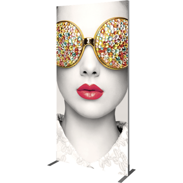 Vector Frame™ fabric banner R04 is a modern, extrusion-based fabric graphic banner display measuring 48.11″W x 94.74″H. The 2″ aluminum extrusion frames are easy to assemble and disassemble and come with the choice of single-sided or double-sided push-fit SEG fabric graphic murals. Vector Frame banner R04 can be used to display messaging or art in a retail, corporate, event or trade show environment and more.