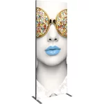 Vector Frame™ fabric banner R06 is a modern, extrusion-based fabric graphic banner display. The 2″ aluminum extrusion frame is easy to assemble and disassemble and comes with the choice of a single-sided or double-sided push-fit SEG fabric graphic. Vector Frame banner R06 can be used to in a retail, corporate, event or trade show environment and more.
