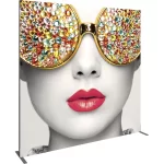 Vector Frame™ fabric banner S04 is a modern, extrusion-based fabric graphic banner display measuring 95.35″W x 94.74″H. The 2″ aluminum extrusion frames are easy to assemble and disassemble and come with the choice of single-sided or double-sided push-fit SEG fabric graphic murals. Vector Frame banner S04 can be used to display messaging or art in a retail, corporate, event or trade show environment and more.
