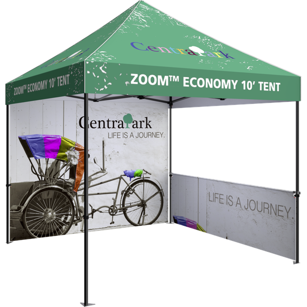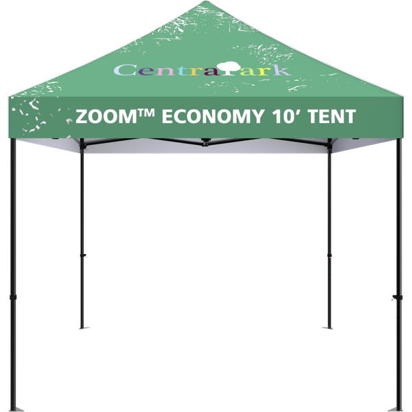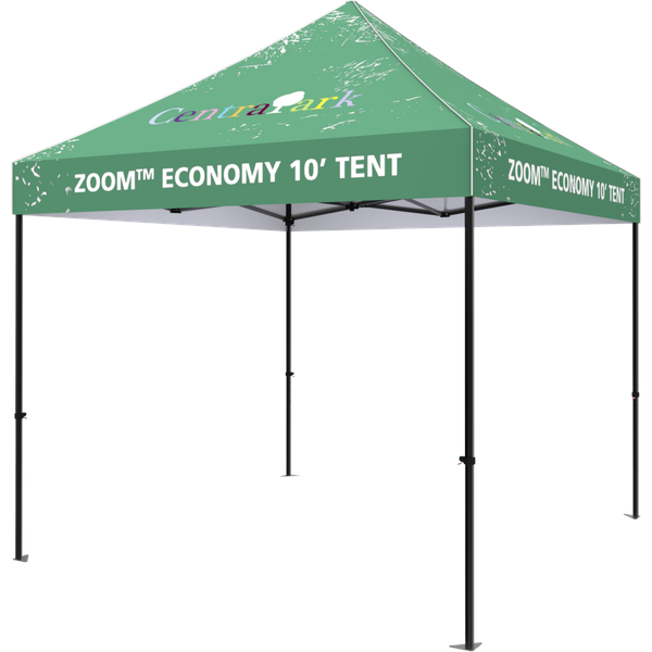 Strong and stable, the Zoom™ 10ft Economy Popup tent features a square steel frame, making it an ideal display at any outdoor event. Stock and custom printed graphics are UV and water resistant, designed to withstand the elements.
